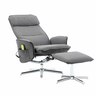 VidaXL Fauteuil de massage avec repose-pied Gris clair et noir Tissu