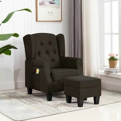 VidaXL Fauteuil de massage avec repose-pied Marron foncé Tissu