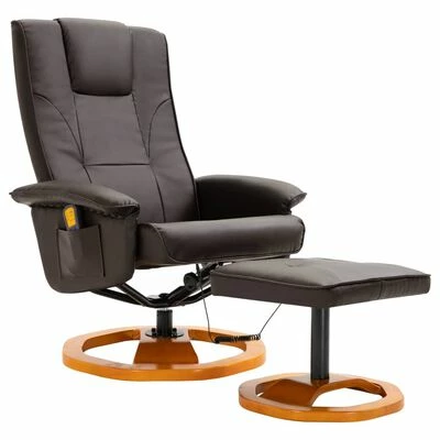VidaXL Fauteuil de massage avec repose-pied Marron Similicuir