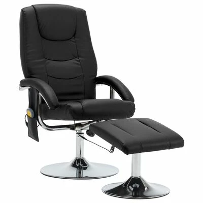 VidaXL Fauteuil de massage avec repose-pied Noir Similicuir