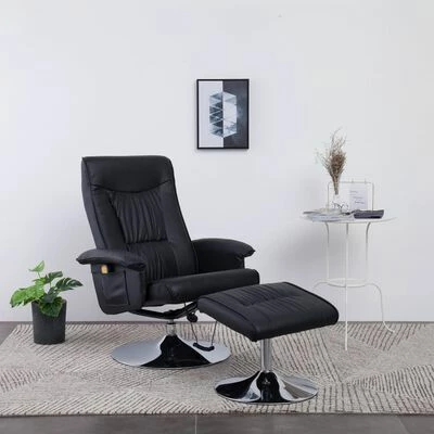VidaXL Fauteuil de massage avec repose-pied Noir Similicuir