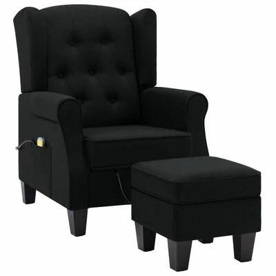 VidaXL Fauteuil de massage avec repose-pied Noir Tissu