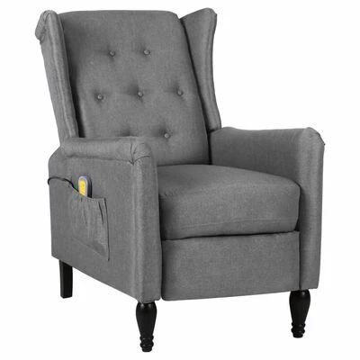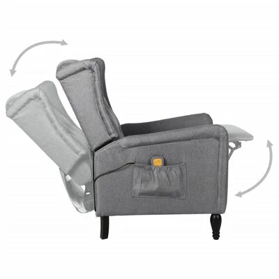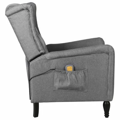 Le fauteuil de massage électrique est fabriqué en tissu solide et rembourré épais, ce qui le rend durable et doux pour y s’asseoir. Les pieds en bois d’eucalyptus massif assurent sa stabilité. Ce fauteuil inclinable de massage dispose de 6 points de massage pour le dos, les fesses et les jambes. La télécommande incluse vous permet de choisir différents programmes de massage. D’une simple pression sur le bouton, le siège peut également être chauffé pour une sensation de détente supplémentaire. De plus, le dossier peut être réglé vers l’arrière, tandis que le repose-pied peut être réglé vers le haut. Cette position vous permet de vous allonger confortablement. Ce fauteuil inclinable de massage électrique est également équipé d’une poche latérale pour la commande manuelle.