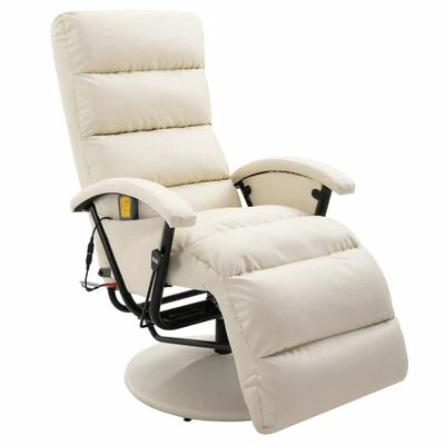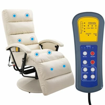 VidaXL Fauteuil de massage TV Blanc crème Similicuir