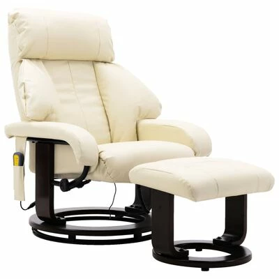 VidaXL Fauteuil de massage TV Blanc crème Similicuir